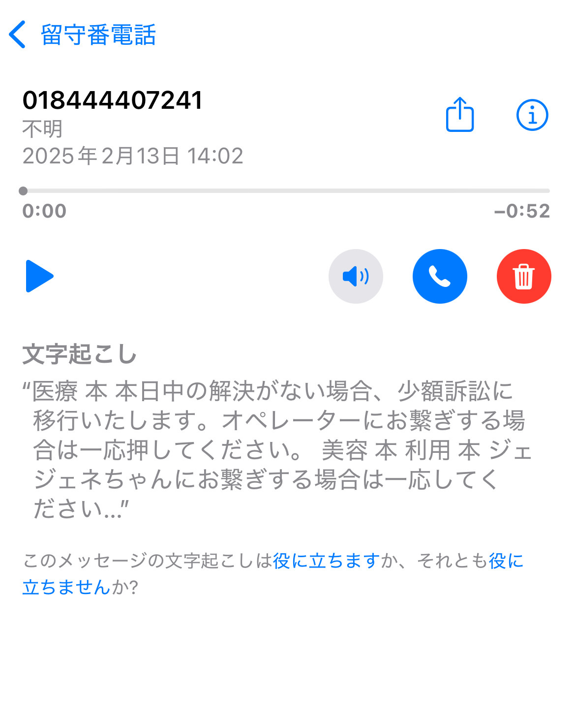 まず驚いたのが、iPhoneは留守電を文字起こししてくれるようになったんですね。