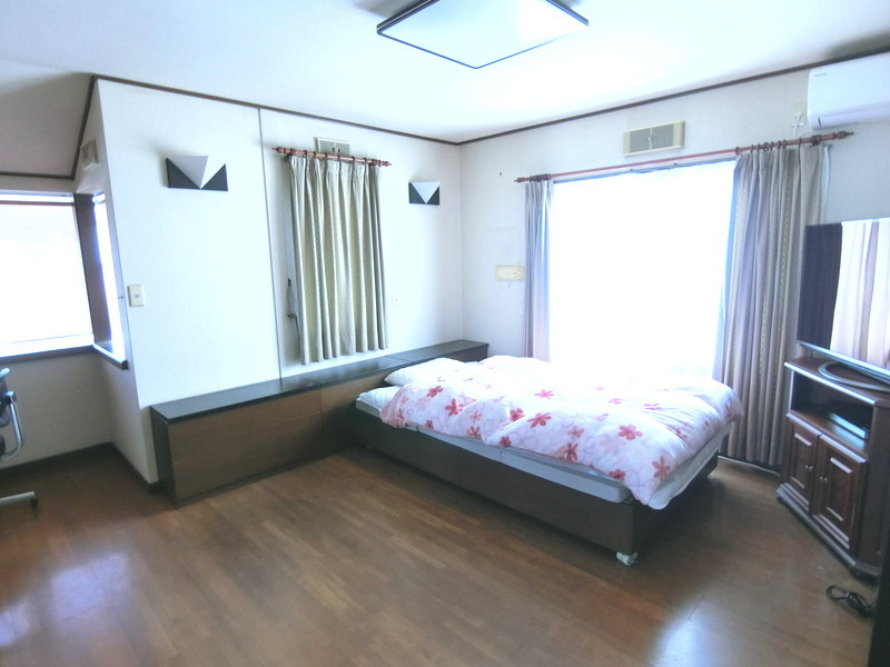 2階の主寝室: 10.5帖の広さがあり、大型ベッドを置いても余裕があります。